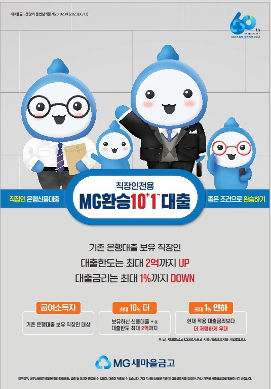 | 새마을금고중앙회가 직장인 전용 갈아타기 대출인 ‘환승101 신용대출’을 새로 출시한다. ‘환승101 신용대출’ 김금고 모델 이미지 [사진=새마을금고중앙회] |
