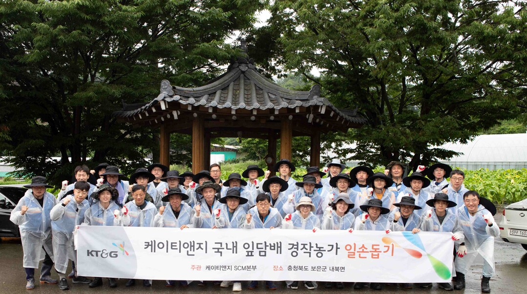 지난 2007년부터 해마다 봉사활동을 펼치고 있는 KT&G는 이날 대전 본사와 김천공장, 충북본부 소속 임직원 40여명이 충북 보은 내북면 소재 농가에서 잎담배 수확을 도왔다.