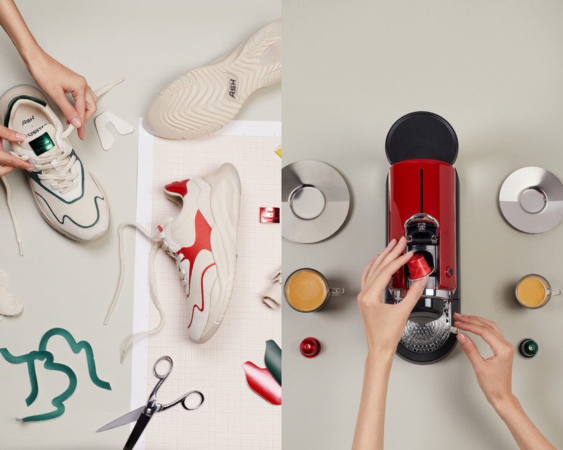이번 컬렉션은 특히 커피 캡슐의 컬러와 패턴을 차용해 네스프레소 커피 캡슐의 특징을 아쉬 스니커즈에 적절히 녹여낸 점이 눈길을 끈다.