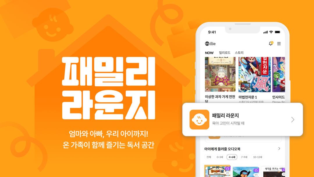 | 밀리의서재가 가족 맞춤형 독서 코너 ‘패밀리 라운지’ 서비스를 론칭했다. [사진=밀리의서재] |