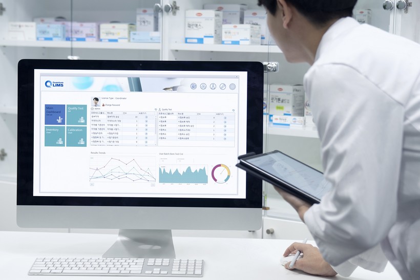 | ▲ 제약회사 연구원이 퀀텀 LIMS를 사용하고 있다. [사진=한미약품그룹] |
