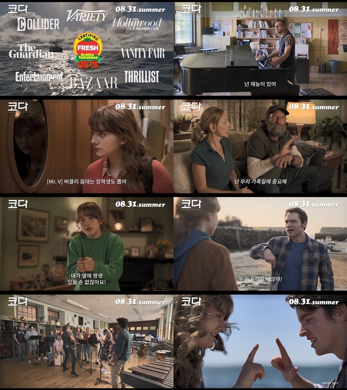 여기에 "상상 그 이상! 최고의 뮤직 드라마"(RollingStone), "올해 사랑에 빠질 단 하나의 음악 영화"(Vox), "우리의 세상을 더욱 가깝게 연결시키는 희망의 멜로디"(KBS미디어 정지은) 등 해외와 국내 매체들의 호평까지 더해져 웰메이드 뮤직 드라마 <코다>가 올여름 극장가에 선사할 감동과 즐거움을 기대하게 만든다.