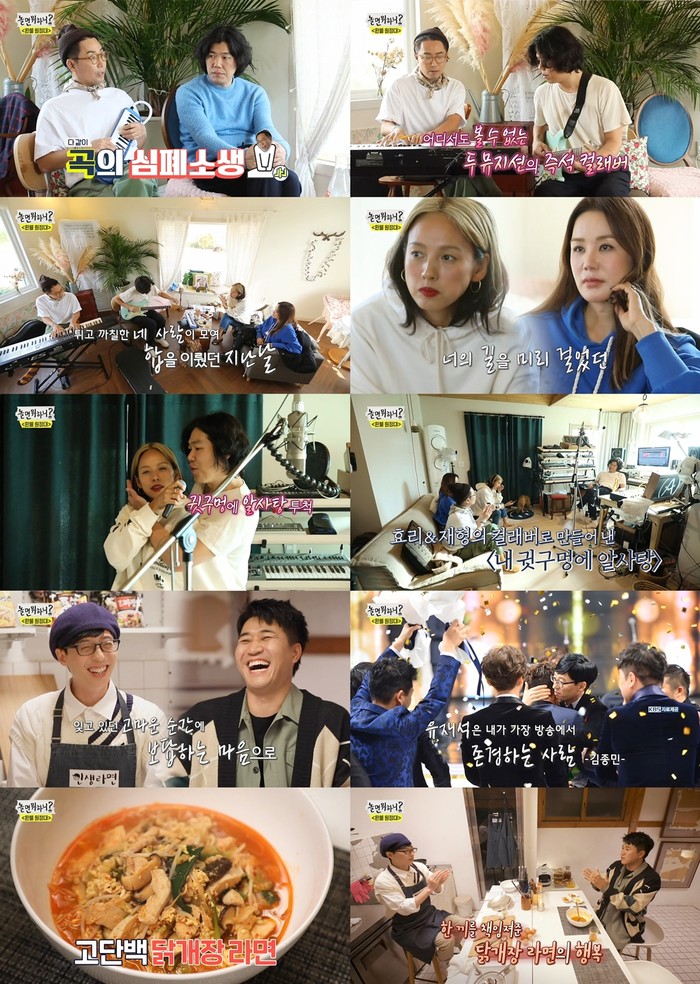 이날 방송에선 환불원정대 활동 종료 후 이야기로 여운을 더했다. 정재형은 ‘지미 유’(유재석)의 마음에 쏙 드는 곡을 뽑아내고 싶다며 절친 엄정화와 함께 제주도의 이효리-이상순 부부를 찾았다. 정재형의 피아노와 이상순의 기타, 이효리의 진솔한 가사가 어우러지며 멋진 컬래버레이션이 성사됐다. 또한 이효리와 이상순은 듀엣곡 ‘내 귓구멍의 알사탕’의 후렴과 안무까지 소화해내 폭소를 유발했다.
