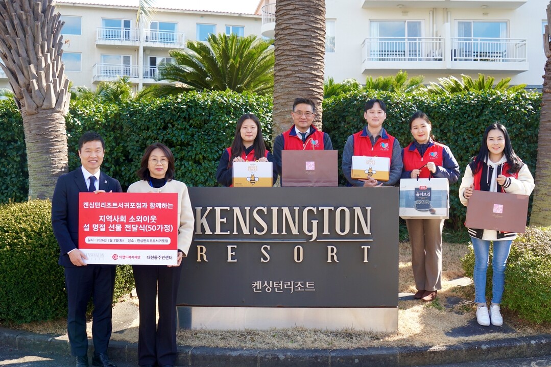 이번 나눔 활동은 켄싱턴리조트 서귀포 임직원들이 설 선물세트와 생필품을 직접 준비하고, 지원 가정을 방문해 전달하며 이웃들의 안부를 살피는 방식으로 진행됐다.