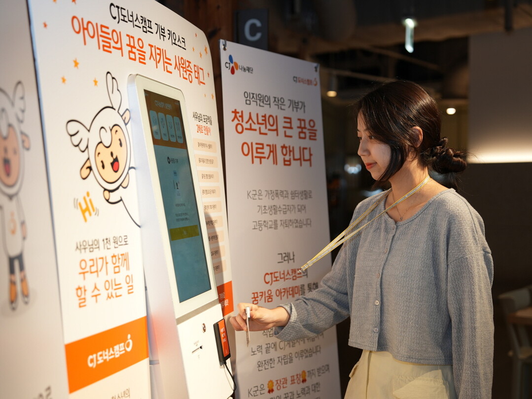 키오스크를 통해 조성된 기부금은 CJ도너스캠프가 동일한 금액을 추가로 기부해 총 기부 금액을 2배로 불려주는 1:1 매칭그랜트 방식으로 운영된다.