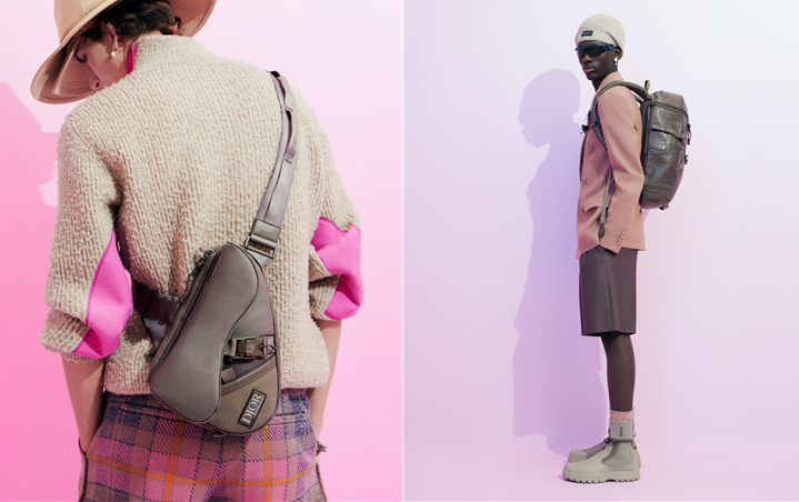 우선 디올 하우스를 상징하는 새들백은 다양한 액세서리를 연결할 수 있도록 상단 밴드에 스티치 디테일을 더한 나일론 자카드 소재의 숄더 스트랩과 알루미늄 ‘CD’ 버클이 특징이다.