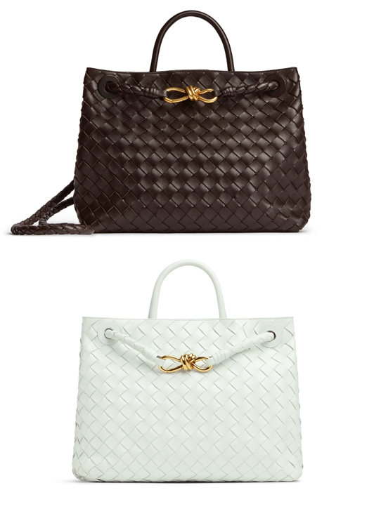 보테가 베네타는 2023년 여름 컬렉션에서 하우스 시그니처인 인트레치아토 기법을 새롭게 재해석한 ‘안디아모’ 백을 선보였다.