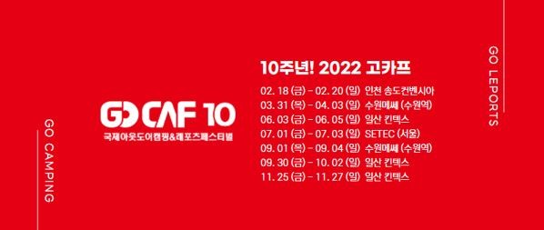 [하비엔=노유정 기자] ‘2022 국제 아웃도어 캠핑&레포츠 페스티벌’(이하 ‘고카프’)이 오는 2월18~20일 인천 송도컨벤시아에서 열린다.