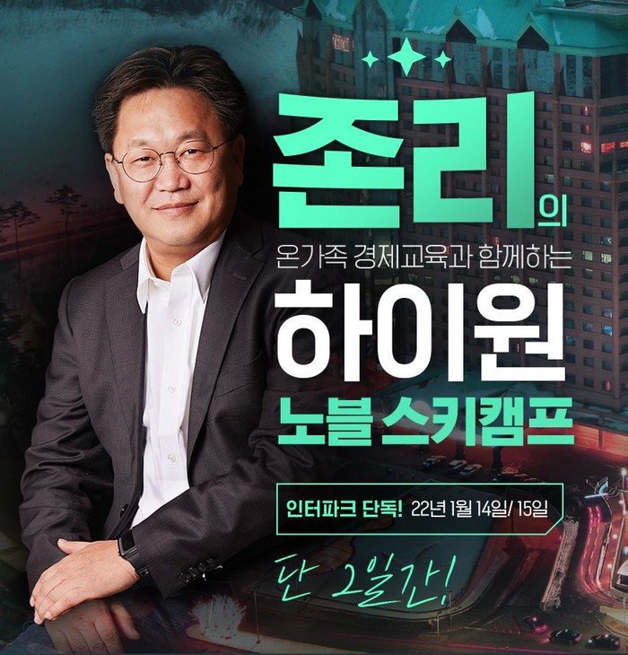 캠프 1일차에는 자산운용사 대표이자 베스트셀러 작가로 유명한 존 리와 경제 전문가들이 ‘온 가족 부자되기’ 특별 강연을 진행하고, 강연 후 디너 만찬과 소통 시간이 이어진다. 또 2일차에는 리프트권과 장비대여권을 제공해 스키를 즐길 수 있다.