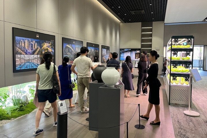 또 ‘디에이치 방배’에 적용되는 반려동물 전용시설 ‘H 위드펫’과 벨소리를 빛으로 전환할 수 있는 초인종 ‘H 벨’ 등 ‘H 시리즈’가 소개됐고, ‘디에이치 방배’에 최초 적용되는 스마트 수직 농장 ‘H 클린팜’이 방문객들의 눈길을 사로잡았다.