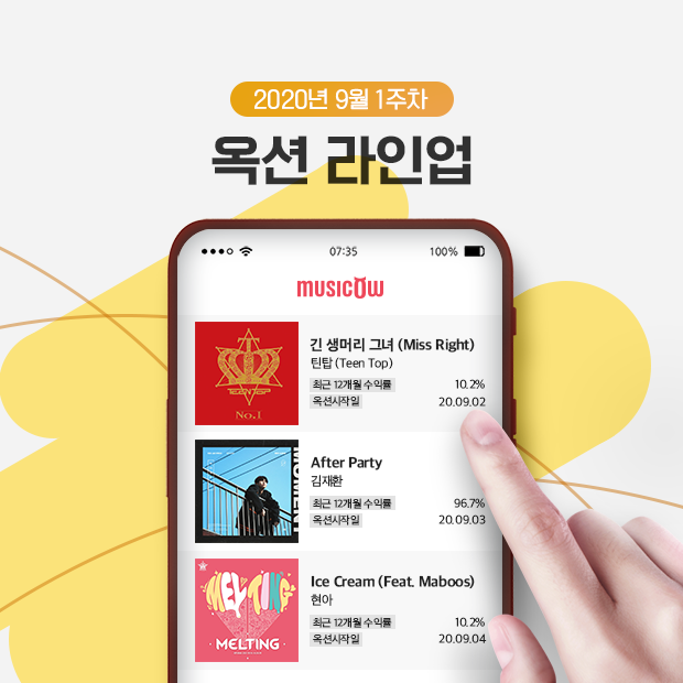 [하비엔=노이슬 기자] 저작권 공유플랫폼 뮤직카우가 9월 첫주간 라인업을 공개했다.