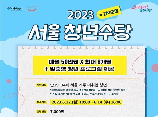 [하비엔뉴스 = 노유정 기자] 서울시는 오는 12~14일 서울 청년수당 2차 참여자 7000명 모집을 진행한다고 4일 밝혔다.
