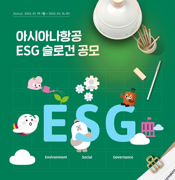오는 2월16일까지 진행하는 공모는 아시아나항공이 나아가야할 ESG 경영 의지를 담은 영문 슬로건과 그 의미를 자유형식으로 기술해 아시아나항공 ESG 공식 이메일로 제출하면 된다.
