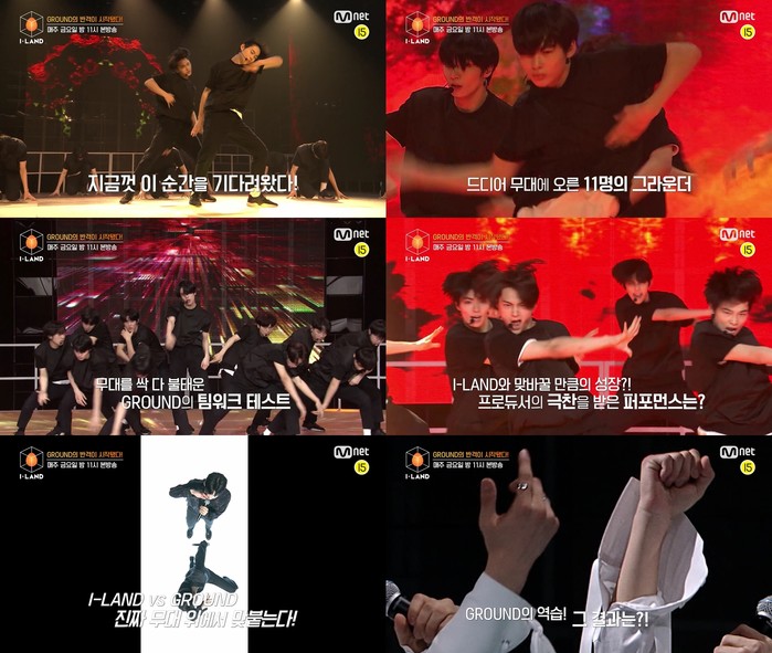 오늘 드디어 무대에 오른 11명의 그라운더는 그 동안 갈고 닦은 기량을 마음껏 뽐낼 예정이다. 일취월장한 그라운더의 실력에 프로듀서 비는 “그라운더가 이렇게 잘할 줄 몰랐다. 단체로 그라운드와 아이랜드에 있는 전원이 한방에 바뀌면 좋겠다”며 극찬을 아끼지 않았다고 해 그라운더들이 보여줄 무대에 기대가 쏠린다.