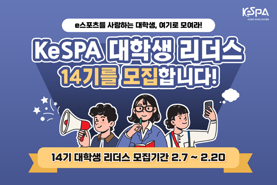 한국e스포츠협회는 오는 20일까지 ‘KeSPA 대학생 리더스’ 14기를 모집한다.
