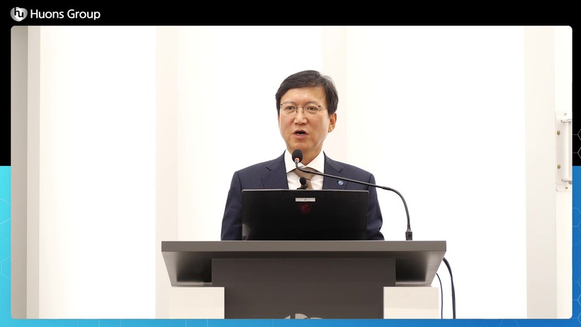 | ▲ 휴온스그룹 윤성태 회장이 온라인 시무식에서 신년사를 전하고 있다. [사진=휴온스그룹] |