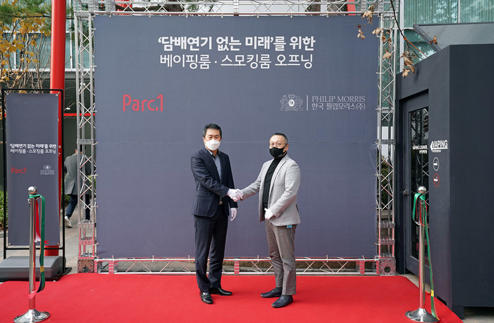 | ▲ 김병일 파크원 전무(왼쪽)와 백영재 한국필립모리스 대표. [사진=한국필립모리스] |