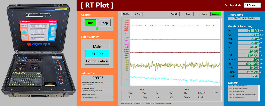| 한전KPS가 자체 개발한 기술특성시험 특화장비 KPSM 실물(좌) 및 계측화면(우). [사진=한전KPS] |