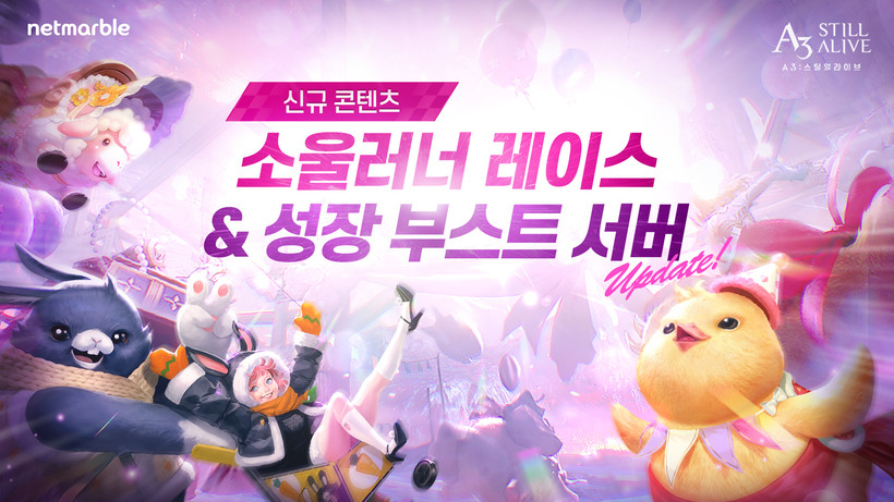 넷마블은 자사의 배틀로얄 모바일 MMORPG(다중접속역할수행게임) ‘A3: 스틸얼라이브’에 신규 콘텐츠 ‘소울러너 레이스’를 추가하는 등 업데이트를 실시했다고 밝혔다.