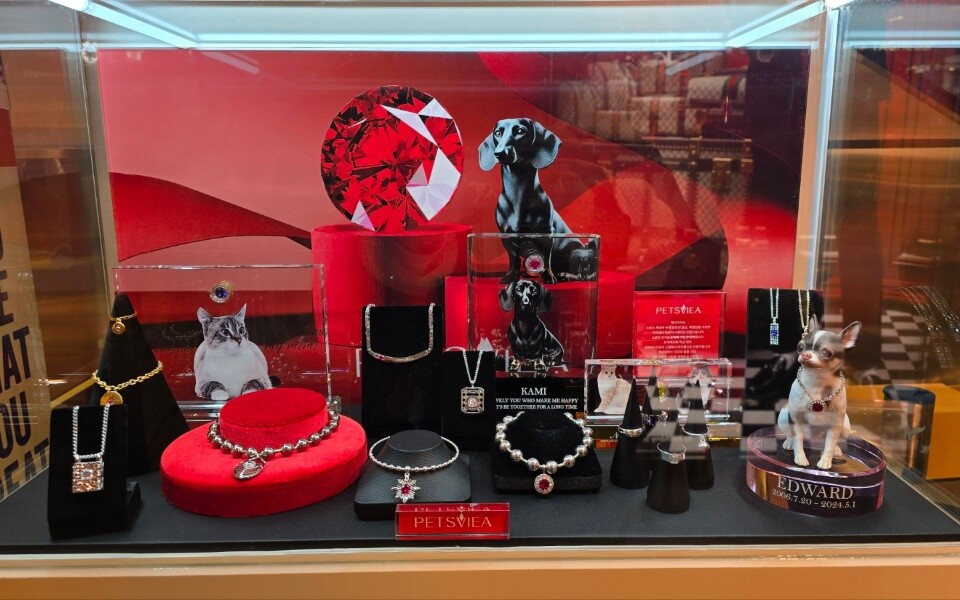 이번 팝업스토어에서는 VIP 고객들을 대상으로 한 하이엔드 브랜드 ‘펫츠비아 엣지’를 선보인다. ‘펫츠비아 엣지’는 동물의 털이나 분골 등의 원료에서 생체원소를 추출해 만든 합성보석이다.
