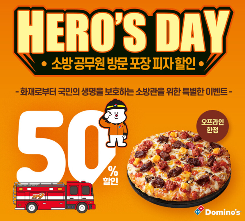 [하비엔뉴스 = 윤대헌 기자] 도미노피자는 소방의 날(11월9일)을 맞아 7~8일 ‘히어로즈데이’를 진행한다고 6일 밝혔다.
