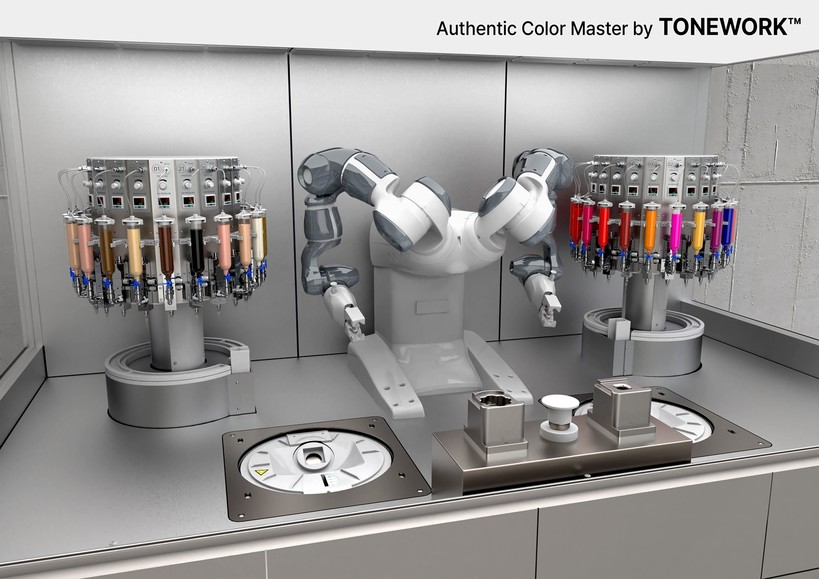톤워크는 인공지능 알고리즘을 활용해 정밀하게 얼굴의 색상을 측정하고, 로봇팔을 활용해 맞춤형 파운데이션·쿠션·립 제품을 제조할 수 있다. 또 안면인식 기술과 색채학 연구를 적용해 최적의 맞춤 컬러를 제안한다.