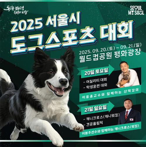 [하비엔뉴스 = 김혜연 기자] 반려견과 함께 걷고 달리며 교감하는 새로운 생활체육 ‘도그스포츠’, 서울시는 9월 20~21일 월드컵공원 평화광장에서 제1회 도그스포츠 대회를 최초 개최하고 8월 22일부터 참여자를 모집한다.