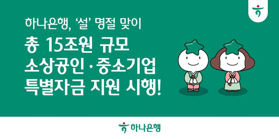 [HBN뉴스 = 이필선 기자] 하나은행은 설 명절을 맞아 자금 수요가 집중되는 소상공인과 중소기업을 대상으로 총 15조원 규모의 특별자금 지원에 나선다고 30일 밝혔다.