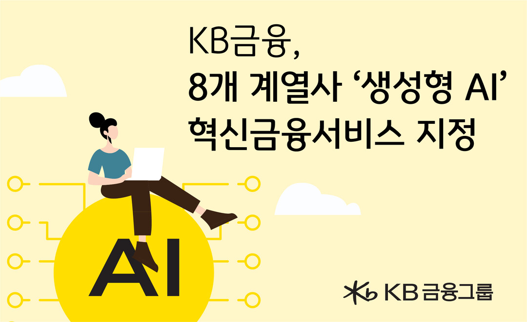 24일 KB금융에 따르면, 이번에 혁신금융서비스로 지정된 주요 서비스는 ▲금융상담 Agent(은행) ▲AI 통합금융플랫폼 캐비(증권) ▲모두의 카드생활 메이트(카드) 등으로, KB국민은행, KB증권, KB손해보험, KB국민카드, KB라이프생명, KB캐피탈, KB저축은행, KB자산운용 8개 계열사는 생성형 AI 모델을 활용해 고객 맞춤형 금융 서비스를 제공할 계획이다.