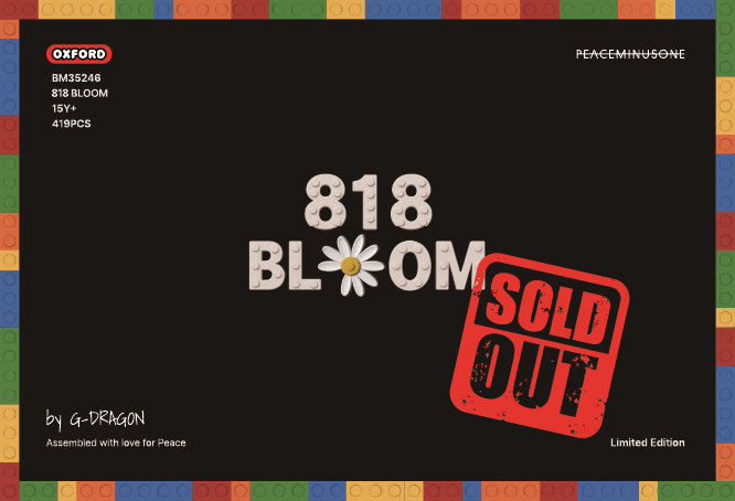 피스마이너스원의 지적재산권(IP)을 활용해 제작한 ‘GD 818 BLOOM’은 지드래곤이 직접 디자인에 참여한 한정판 블록 세트로, 아티스트의 친필 서명과 시리얼 넘버가 기재된 정품 인증서를 제공해 전 세계 팬들과 콜렉터들에게 상징성과 희소성을 인정받고 있다
