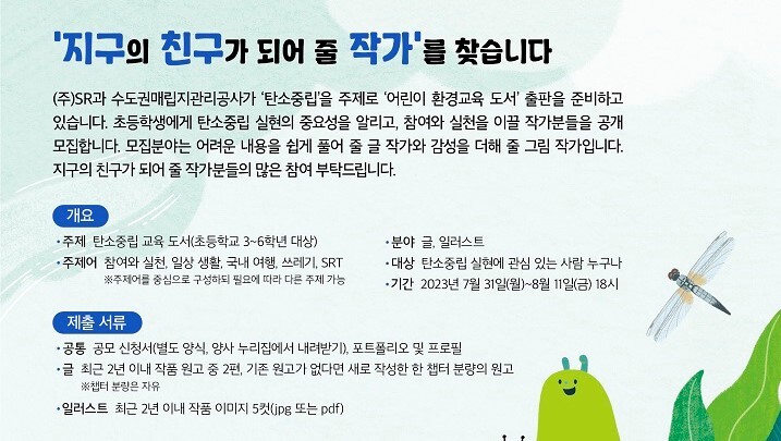 | 에스알이 어린이 환경교육도서를 집필할 작가를 공개 모집한다. |