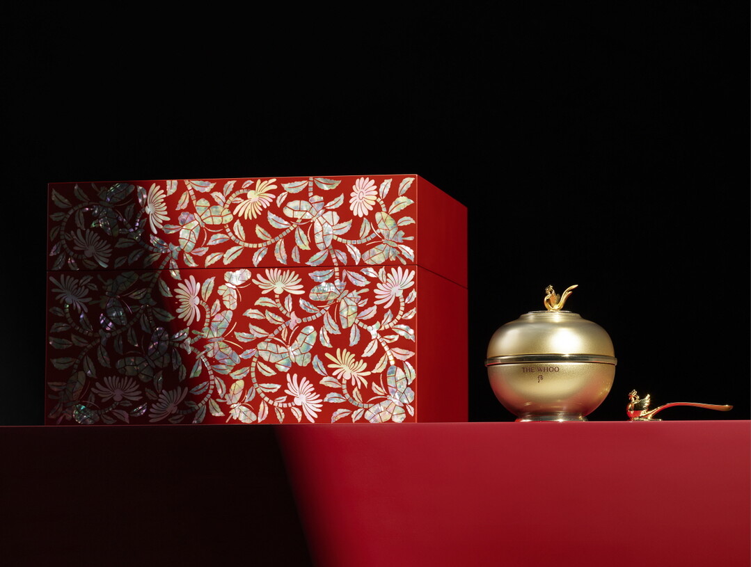 LG생활건강은 각국 정상에게 증정한 ‘국빈 세트’의 품격을 더후 환유고 APEC 리미티드 에디션에 그대로 담았다. 패키지로는 국빈 세트와 마찬가지로 서울특별시 무형유산 제1호 칠장 수곡 손대현 장인이 손수 만든 주칠(붉은 칠) 국화당초문 나전칠기함을 준비했다. 내용물로는 더후 브랜드의 하이엔드 안티에이징 크림인 ‘환유고’ 60ml와 봉황 스패출러를 구성했다.