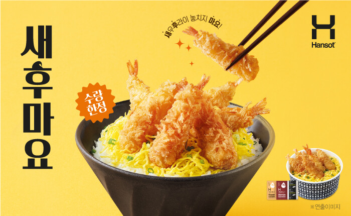 | ▲ 한솥은 새우후라이를 토핑으로 올린 ‘새후마요’를 수량 한정으로 선보였다고 7일 밝혔다. |