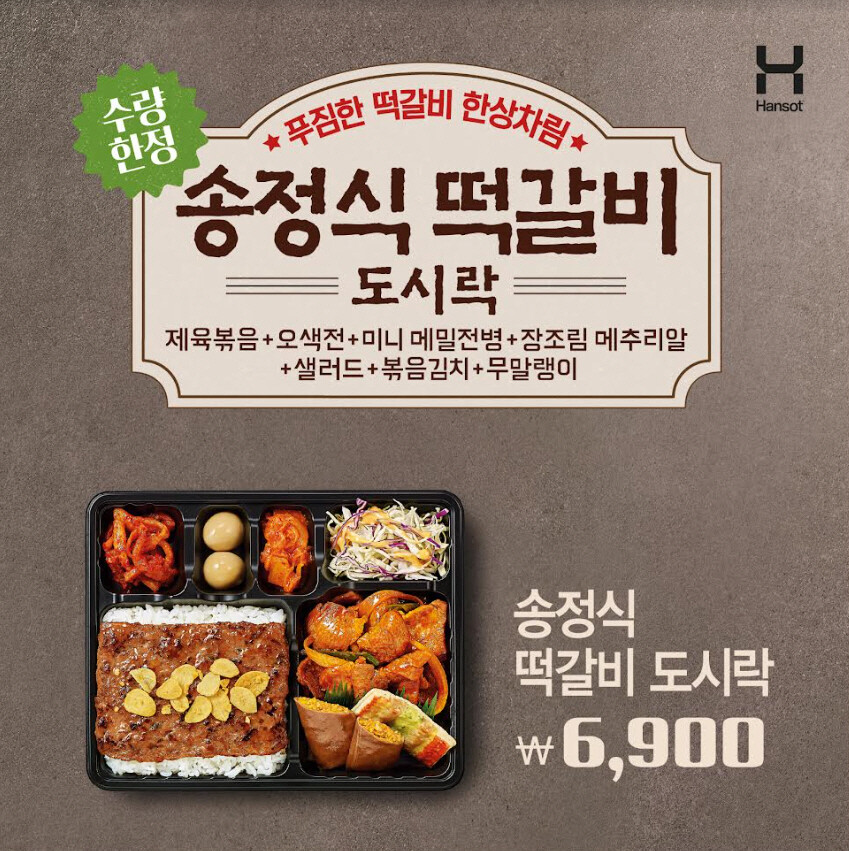 한솥 마케팅 담당자는 “한솥의 신메뉴인 ‘송정식 떡갈비 도시락’에 고객이 보여주신 뜨거운 관심과 호응에 진심으로 감사드린다”며 “합리적 가격에 남녀노소 모두 행복하게 즐길 수 있는 알찬 구성의 메뉴를 지속적으로 선보여 외식 물가 안정에 앞장설 것이다”라고 말했다.