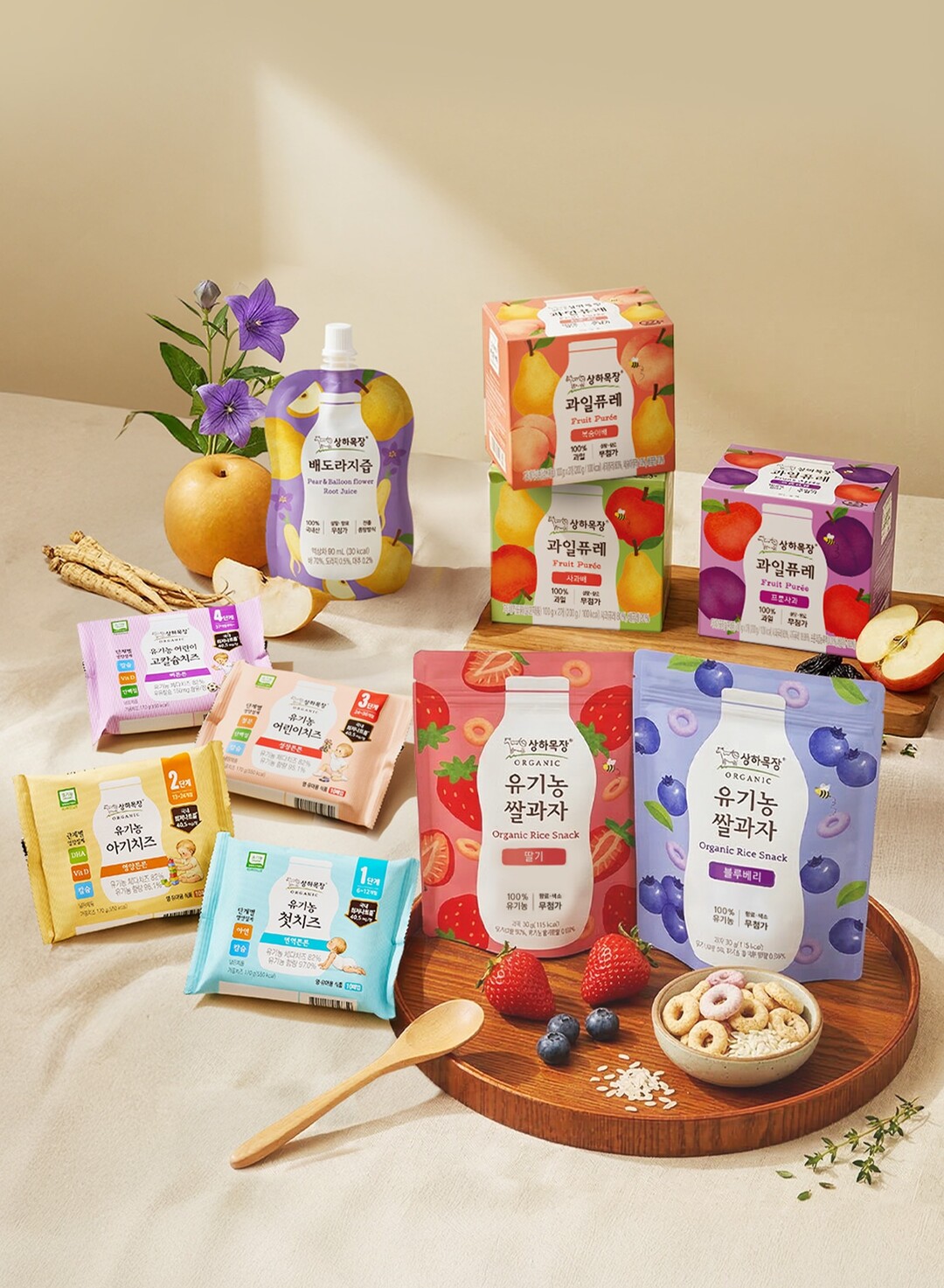 최근 영유아 식품 시장에서는 ‘안전한 원료’와 ‘정교한 영양 설계’에 대한 부모들의 관심이 높아지는 가운데 이번에 출시된 신제품은 상하목장 ▲과일퓨레(3종) ▲배도라지즙(1종) ▲유기농 쌀과자(2종) ▲유기농 아이치즈(4종) 등 총 4개 카테고리로 구성됐다. 아이의 성장 단계와 섭취 편의성을 고려한 맞춤형 영양 설계가 특징이라고 매일유업은 설명했다.