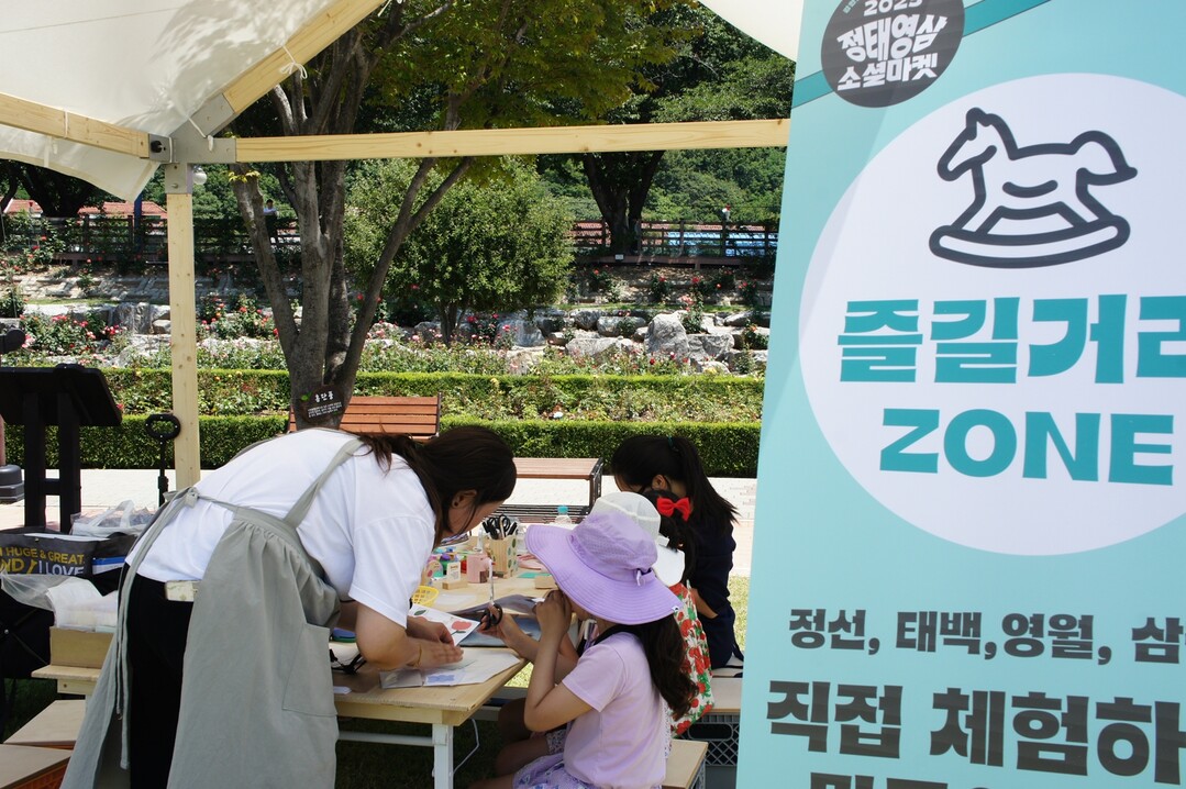 정선·태백·영월·삼척의 소상공인과 로컬크리에이터 약 40여팀이 참가하는 ‘정태영삼 소셜마켓’에는 ▲로컬 농산품 부스 ▲로컬 먹거리 부스 ▲살거리 부스 ▲만들기 체험 부스 등이 조성돼 다양한 즐길거리를 제공할 예정이다.