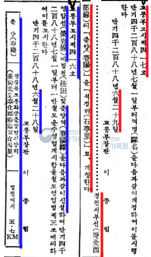 그러나 후자 ‘억지춘양’은 1948년 8월15일 대한민국정부 수립 후 1949년 4월 8일 최초로 영주~철암 간 철도부설 공사가 시작 된 후 6.25전쟁으로 중단되었다가 1953년 9월28일 다시 시작하여 공사가 90%이상 진전된 상황에서 춘양면 출신 3대국회의원으로 당시 자유당 원내총무였던 ○○○의원이 법전~녹동 간 직선연결 계획이었던 철도를 춘양면소재지를 돌아가게 하여 춘양역이 탄생하여 ‘억지춘양‘이라는 말이 탄생하였다는 이야기가 전해지고 있어 그 사실여부를 철도역사에서 찾아본 결과를 정리해본다.
