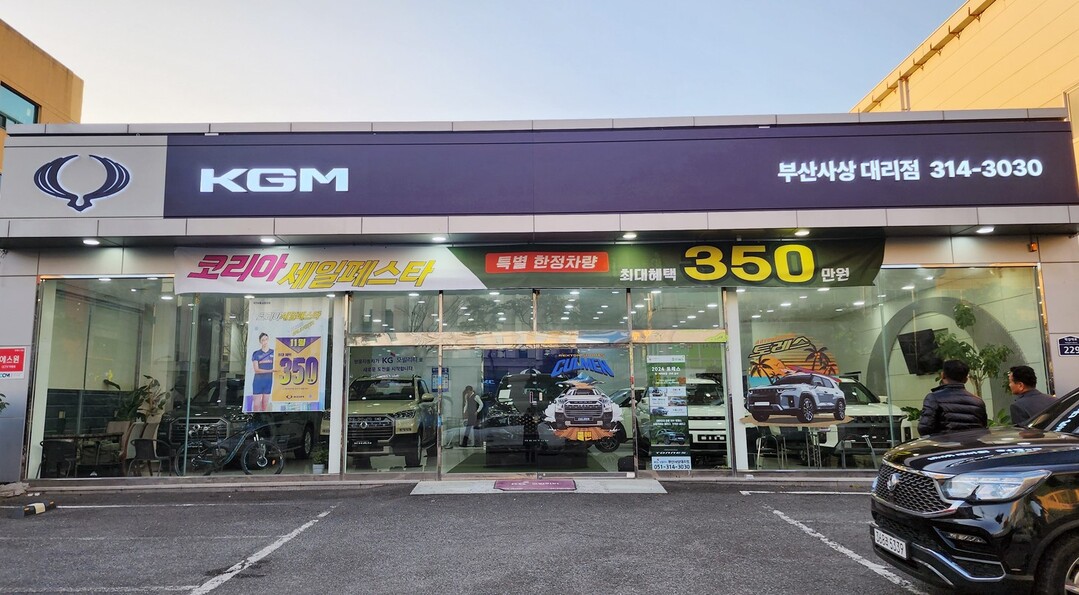| KG모빌리티 부산사상 대리점 전경. [사진=KG모빌리티] |