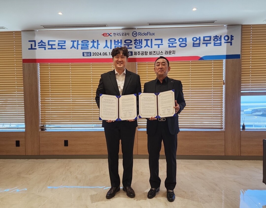 [하비엔뉴스 = 홍세기 기자] 한국도로공사와 라이드플럭스가 지난 18일 제주공항 비즈니스라운지에서 ‘고속도로 자율주행차 시범운행지구의 운영 협력을 위한 업무협약’을 체결했다.
