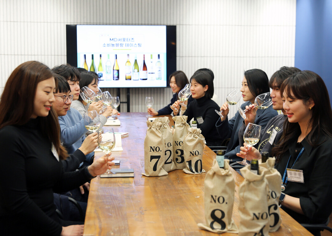 MD서포터즈 구성원들은 총 30여 개의 화이트와인에 대한 블라인드 테스트를 진행했다. 이중 가장 평가가 좋았던 그로브밀소비뇽블랑을 비롯해 조지미쉘쇼블, 푸나무쇼블 등 7종의 쇼비뇽블랑 와인이 4월 이달의 와인 상품으로 최종 선정됐다.