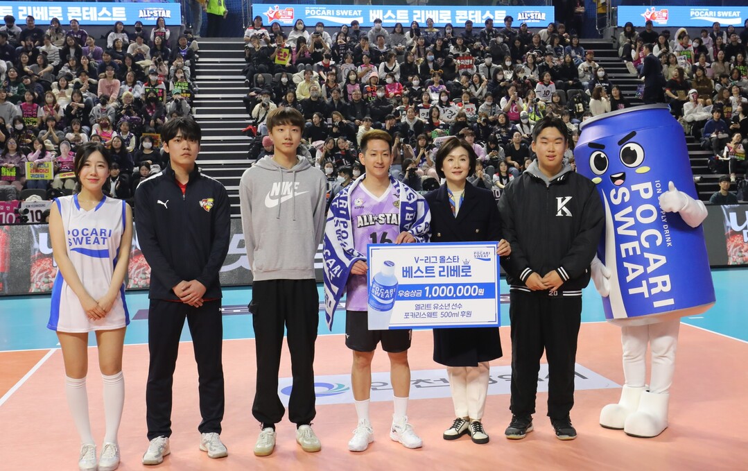 또 동아오츠카는 선수들과 관객을 위해 포카리스웨트를 지원하고, ‘포카리스웨트 베스트 리베로’ 이벤트 게임을 진행했다. 콘테스트 결과 올스타전 최고 리베로는 료헤이(한국전력) 선수가 차지해 한국배구연맹(KOVO)이 100만원의 상금을 수여했다.