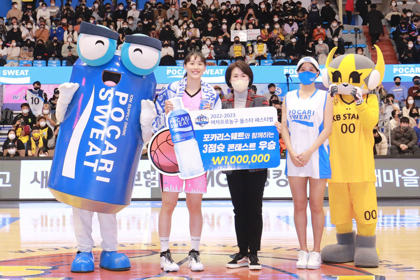 또 ‘포카리스웨트와 함께하는 3점슛 콘테스트’에서는 디펜딩챔피언으로 2연패 중인 강이슬(KB스타즈) 선수가 또 한 번 우승을 차지해 100만원의 상금을 거머쥐었다.