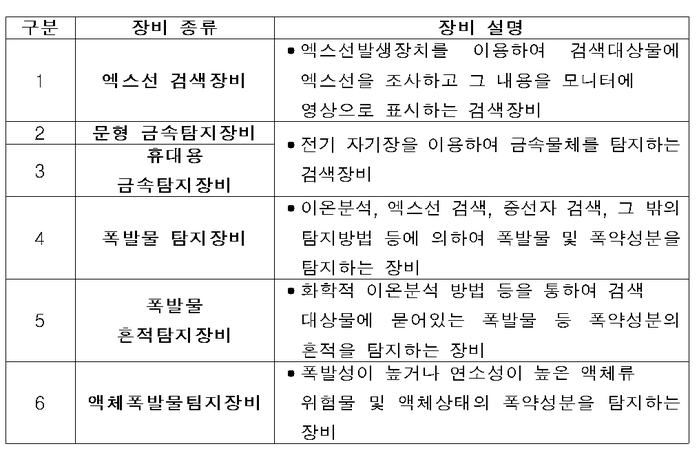 | ▲ 성능인증이 필요한 철도보안검색 장비 종류 |