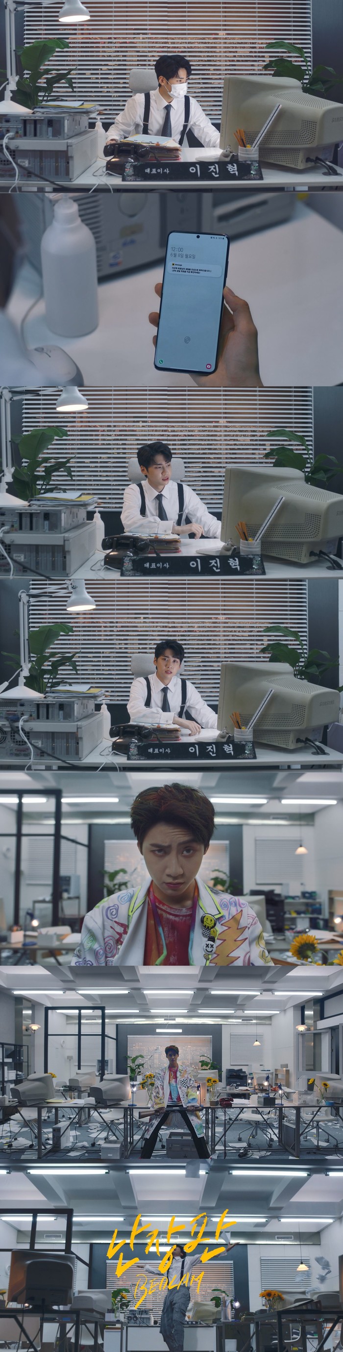 티저 영상 속 아무도 없는 사무실에서 홀로 마스크를 쓰고 업무를 보고 있던 이진혁은 생일을 알리는 휴대전화 알림음과 함께 마스크와 서류를 집어던졌고, 이내 사무실을 난장판으로 만들어 눈길을 끌었다.