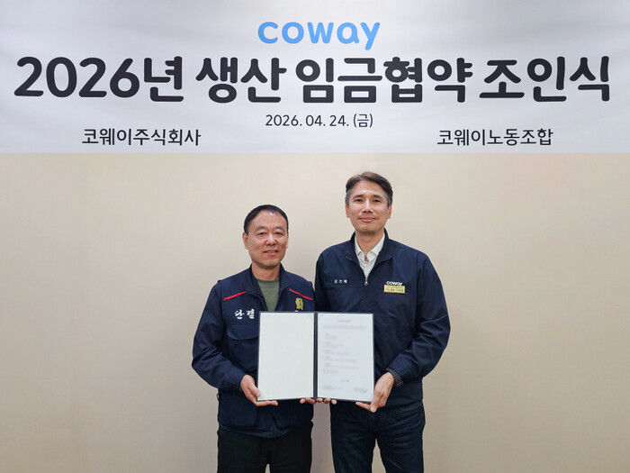 코웨이는 올해 2월 생산 코웨이노동조합과 2026년도 임금협약 교섭을 시작했으며 이달 16일 잠정합의안을 도출했다. 이후 20일부터 22일까지 진행된 조합원 찬반 투표 결과, 약 77% 찬성으로 최종 타결됐다.