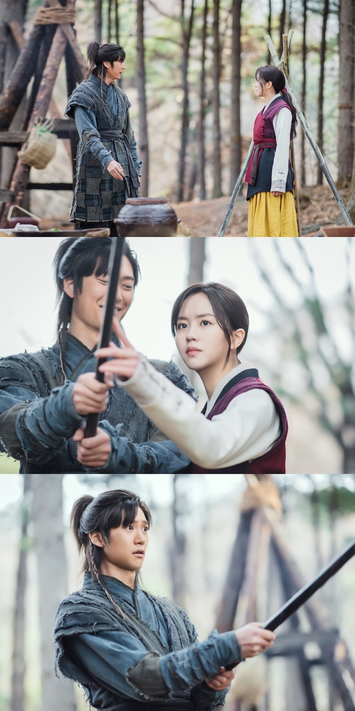 이런 가운데 오늘(16일) '달이 뜨는 강' 측이 평강과 온달의 무예 훈련을 포착한 스틸컷을 공개해 이목을 집중시킨다. 열띤 무술 훈련 현장에서도 느껴지는 두 사람의 케미가 보는 이들의 심장까지 뛰게 한다.