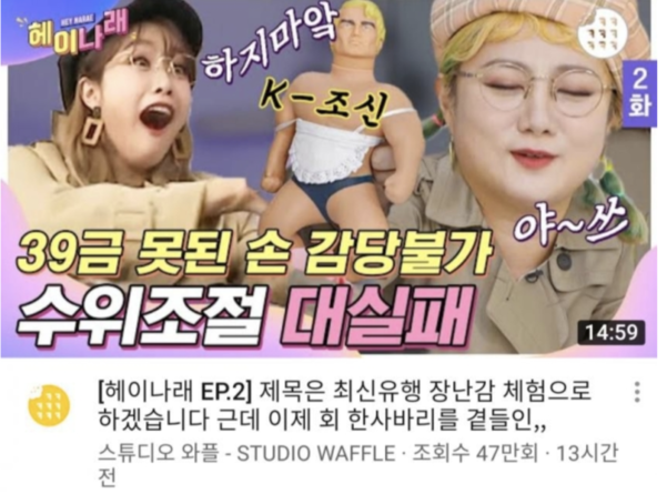 지난 23일 공개된 '헤이나래' 2회 영상에서 박나래는 '암스트롱맨'이란 이름의 속옷만 입은 남성 인형을 살펴보던 중 팔이 어디까지 늘어나는지 보겠다며 인형의 팔을 사타구니로 가져가 성기를 연상케 하는 모양을 연출하해 논란이 일었다.