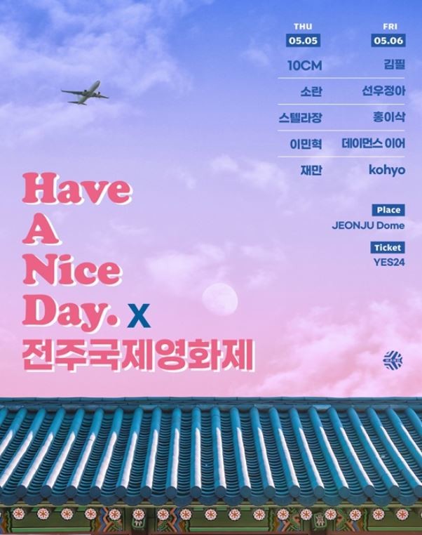 [하비엔=노유정 기자] 제23회 전주국제영화제가 영화제 기간인 5월5·6일 전주돔에서 음악 페스티벌 ‘해브 어 나이스데이X 전주국제영화제’를 개최한다고 밝혔다.
