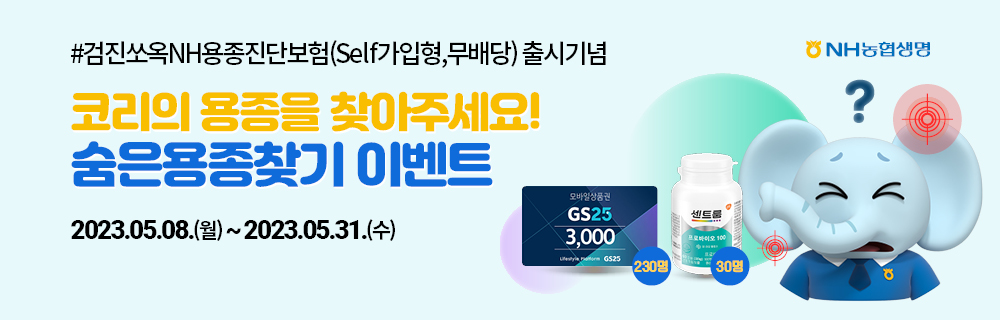 NH농협생명은 또 이번 신상품 출시를 기념해 오는 31일까지 숨은 용종 찾기 이벤트를 진행한다. 농협생명 마스코트 ‘코리’의 몸 안에 용종을 찾으면 장건강 유산균 영양제와 GS25모바일상품권을 추첨해 증정한다.