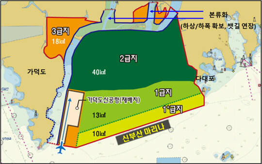 노준성 세종대 환경에너지융합학과 교수는 “가덕도와 다대포를 연결하는 연안은 수심이 20미터 이내로 얕아 총길이 12㎞의 방조제를 건설하고 내륙 부분을 매립하면 광활한 면적을 확보할 수 있다”고 설명했다.